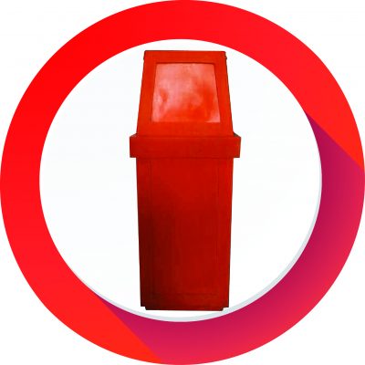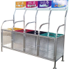ถังรองรับขยะมูลฝอย สติกเกอร์คัดแยก โครงเหล็ก พร้อมป้ายหน่วยงาน องค์กร ฯลฯ โครงเหล็กจะขึ้นอยู่กับขนาดความจุของถังรองรับ